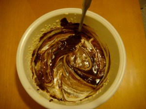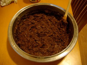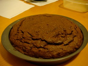 Using coconut oil instead of butter in the cake batter further infused a “german chocolate cake” taste, which I enjoy.  Next time, I will substitute grain-sweetened chocolate for the bittersweet chocolate so it truly will be without white sugar.