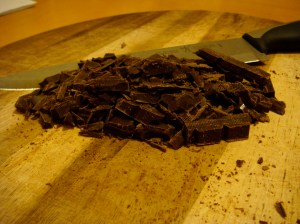 Chocolate chopped and ready to be added to the batter